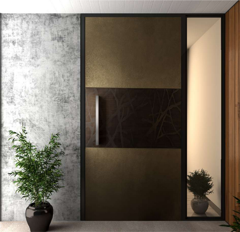 The Mod Door 18 features an asthetic dual metallic design , textured finish with raised detail. This design with clean lines and a choice of finishes will suit any home or commercial site. The use of real metallic materials adds a touch of luxury and sophistication to the door, making it a standout feature of any building. With a range of customization options available, including size, finish, and glazing, the Mod Door 5 can be tailored to individual requirements, ensuring a perfect fit for any project. Whether for a residential or commercial application, the Mod Door 5 is the ideal choice for those seeking a contemporary, high-quality entrance door that offers both style and security. Incorporating the revolutionary QuiXseal automatic inflatable weatherstripping system which keeps the door airtight and secure against air infiltration, Air pollution, Floodwater invasion, Infiltration of Pollen, dust and fumes. Ideal for Eco-Haus projects or the decerning owner. Comes with upto 7 point locking to all four sides giving full security to your property.
